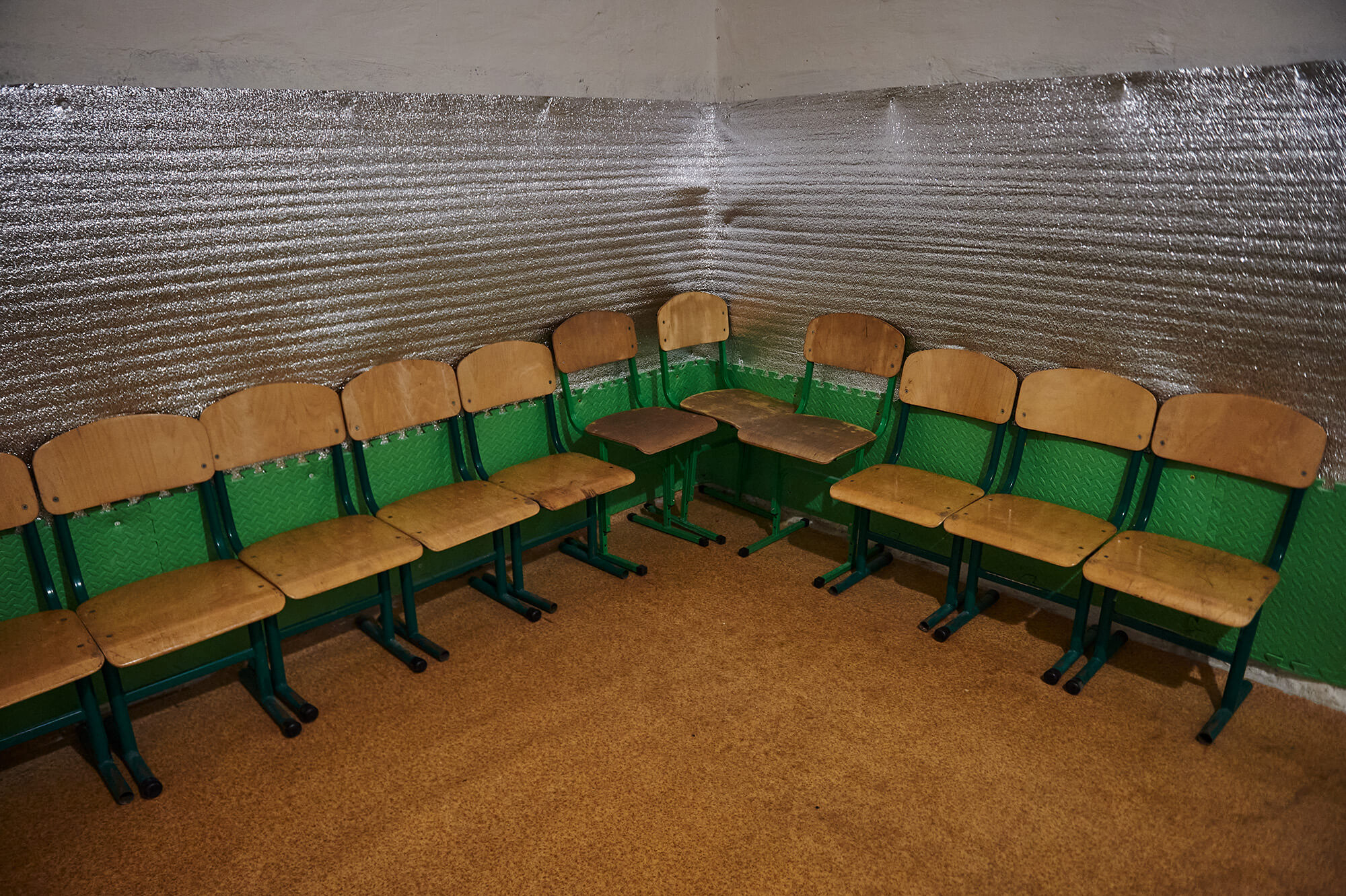 Since the onset of the full-scale invasion in 2022, daily life in Ukraine has moved underground. This series documents the adaptation of basements, cellars, and technical corridors into air raid shelters.